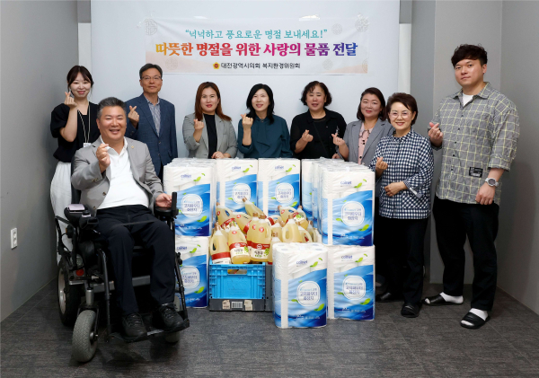 [충청뉴스 김용우 기자] 대전시의회 복지환경위원회(위원장 이효성)가 추석 명절을 맞아 26일 대전척수장애인협회를 방문해 휴지 등 생필품을 전달하고, 관계자들을 격려했다.