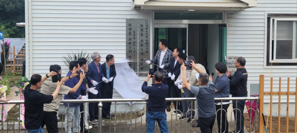 교촌3리 희망마을에서 열린 개소식에는 맹영호 동남구청장을 비롯해 유홍준 대한노인회 천안시지회장, 마을 주민 등 50여 명이 참석해 경로당 개소를 축하했다.