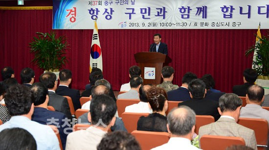 대전시 중구(구청장 박용갑)는 2일 구청 대회의실에서 구민과 염홍철 대전시장 등 기관.단체장 200여 명을 초청한 가운데 ‘제37회 구민의 날 기념식’을 개최했다.