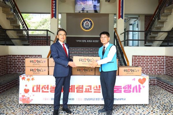[충청뉴스 이성현 기자] 대전지역 봉사단체인 대전봉사체험교실이 한남대 환경개선과 시설안전을 위해 수고하는 용역직원들을 위한 사랑의 기부 물품을 전달했다.