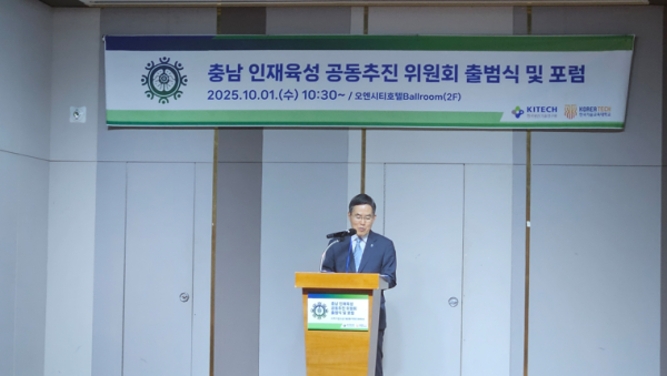[충청뉴스 유규상 기자] 한국기술교육대학교(KOREATECH·총장 유길상)는 1일 천안 오엔시티 호텔에서 한국생산기술연구원(KITECH. 원장 이상목)과 함께 지역 기업수요 대응형 인재 육성을 위한 ‘충남 인재육성 공동추진위원회’ 출범식을 거행하고 충남도, 충남테크노파크, 충남연구원, 기업체 대표 등 70여 명의 전문가들이 참여한 가운데 공동 포럼을 개최했다.