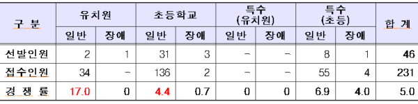 46명 선발에 231명 지원, 올해 평균 경쟁률 5.0대1