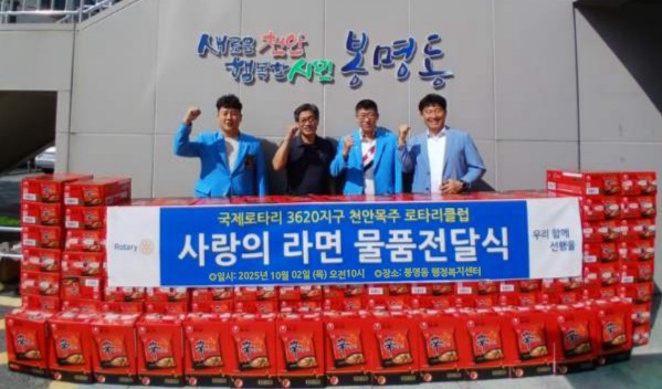 박용동 봉명동장은 “어려운 시기에 이웃들을 위해 따뜻한 정성을 보내주신 천안목주로타리클럽에 감사드린다”며 “후원물품은 도움이 필요한 주민들에게 잘 전달할 것”이라고 말했다.
