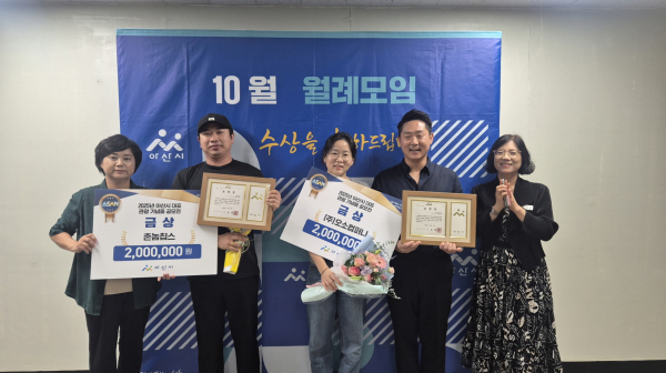 [충청뉴스 유규상 기자] 아산시(시장 오세현)는 지난 2일 시청 시민홀에서 열린 10월 월례모임에서 2025 아산시 대표관광기념품 공모전 금상 수상작 2점을 시상했다.