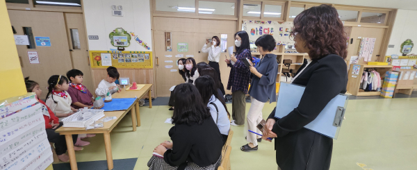 유치원 교사들이 공개수업을 참관하고 있다