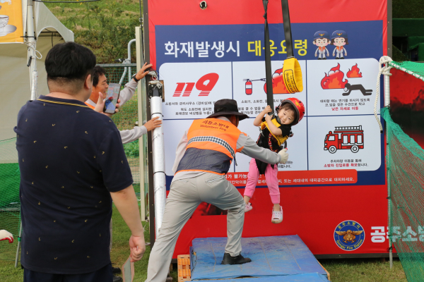 특히, 고층건물 화재 시 안전한 탈출을 위한 완강기 체험과 짚라인 계곡탈출 체험은 실제와 비슷한 환경에서 대피하는 체험을 할 수 있어 아이들에게 큰 호응을 얻었다.