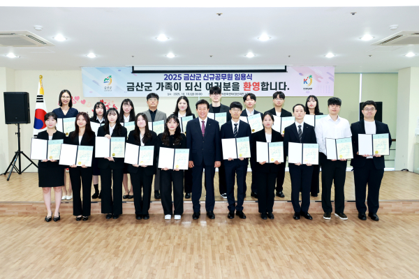 박범인 군수는 “공직에 입문한다는 것은 군민의 삶을 책임지고 지역의 미래를 함께 만들어 간다는 뜻깊은 일”이라며 “오늘 이 자리를 통해 금산군의 새로운 가족이 된 것을 진심으로 환영한다”고 말했다.