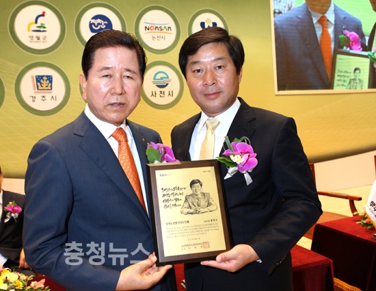 황명선 논산시장이 지역 농업발전에 기여한 공로로 농협중앙회에서 주관한 지역농업발전 선도인상을 수상했다.