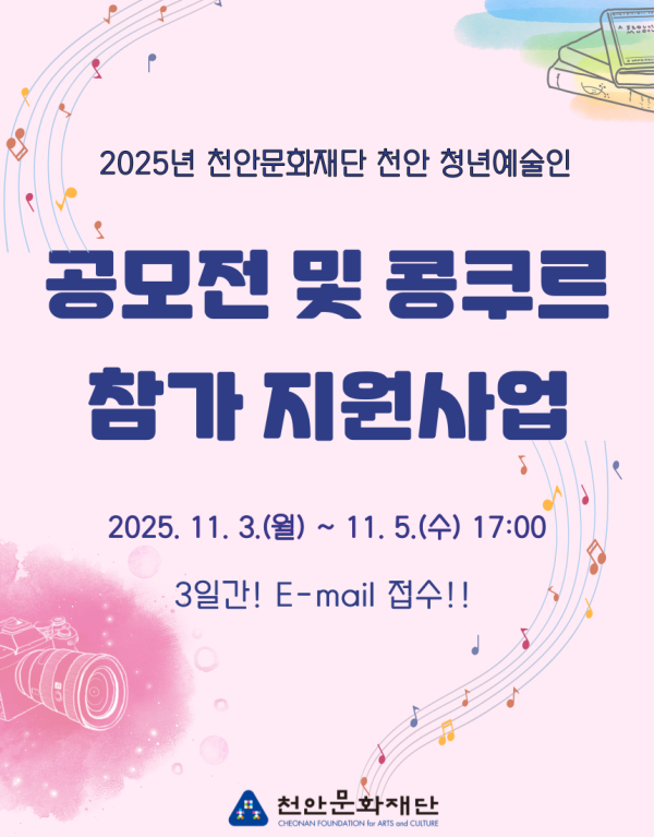 천안문화재단, 청년예술인 공모전 및 콩쿠르 참가 지원사업 참여자 공모