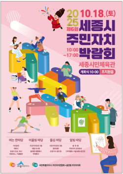 [충청뉴스 최형순 기자] 세종시가 오는 18일 조치원읍 세종시민체육관에서 ‘주민의 손길로 가꾸어, 세종의 내일을 꽃피우다’를 주제로 제6회 세종시 주민자치박람회를 개최한다.