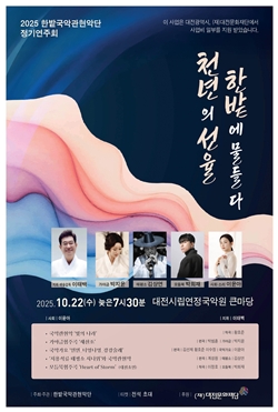 한밭국악관현악단은 이번 무대에서 전통과 현대, 감성과 열정을 아우르는 국악관현악의 진수를 선보인다. 전통 음악의 미래를 이끌어갈 지역 국악인들의 활약이 돋보이는 무대로 지역 문화예술 생태계의 지속가능한 성장과 국악의 대중화에 기여할 것으로 기대를 모은다.