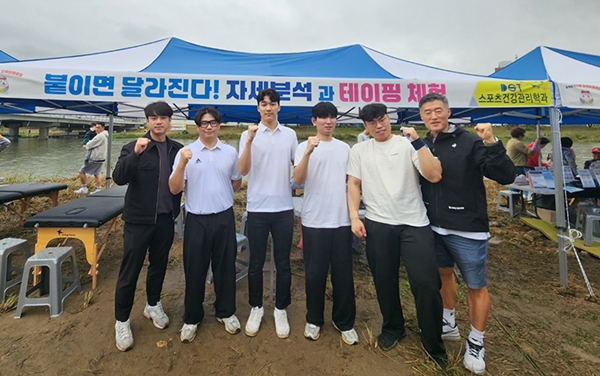 이날 스포츠건강관리학과 재학생들은 축제에 참여한 지역주민을 대상으로 연령에 맞는 근골격계 통증 예방과 운동 손상 관리의 중요성을 알리는 스포츠테이핑 체험 프로그램을 진행했다.
