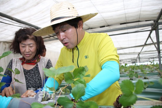 논산 아이콘인 딸기 본격 정식 시기 맞아 일손 돕기