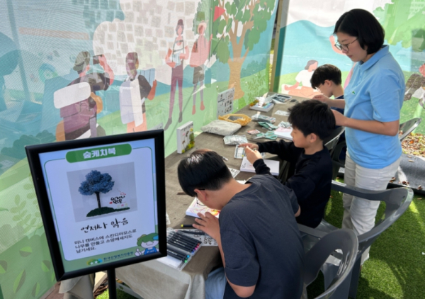 또한, 참가자들이 숲을 직접 체험하며 즐거움을 느낄 수 있도록 ▲솔방울과 목재 골프채를 활용한 흥미진진한 숲놀이인 ‘숲속 골프’ 프로그램과 ▲자연물을 소재로 나만의 액자를 만드는 자연미술 체험 ‘숲케치북’ 프로그램을 운영하여 큰 호응을 얻었다.