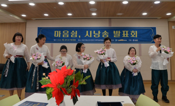 [충청뉴스 최형순 기자] 대전 유성구장애인종합복지관(관장 이명순)은 21일 유성구청소년수련관 다목적실에서 장애인과 그 가족들을 위한 심리정서 지원사업인 〈마음쉼, 시낭송〉 발표회를 성공적으로 개최했다.