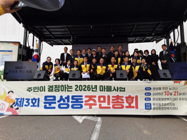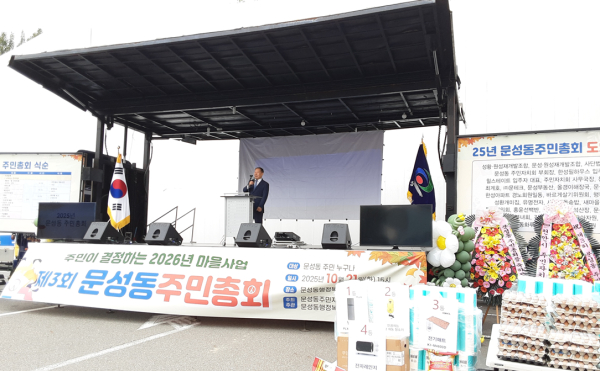 소영진 주민자치회장은 “이번 주민총회는 주민이 직접 참여하고 결정하는 화합의 장”이라며 “오늘 선정된 마을의제를 실행하여 주민과 함께 살기 좋은 문성동을 만들어 나갈 것이며, 우리가 함께 만들어 가는 변화의 시작에 주민들의 적극적인 참여를 부탁한다”고 말했다.