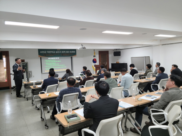 [충청뉴스 서천 = 조홍기 기자] 서천군지속가능발전협의회는 지난 22일 서천문예의전당 교육실에서‘서천군 작은학교 살리기 정책 제언 토론회’를 개최하였다. 이번 토론회는 농어촌 인구감소와 교육환경 악화로 인해 폐교 위기에 놓인 지역 작은학교의 문제를 진단하고, 교육·행정·지역사회가 함께 지속가능한 대안을 모색하기 위해 마련되었다.
