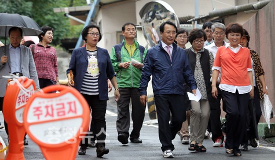▲ 한현택 동구청장은 12일 자양동에서 주민들과 함께 ‘동네한바퀴’ 골목길 탐방에 나섰다.