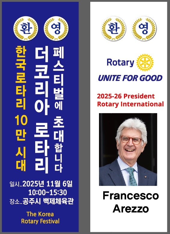이번 행사는 ‘한국 로타리 10만 시대’를 기념하고, 로타리안 간의 교류와 화합을 도모하기 위해 마련됐다. 특히 프란체스코 아레초(Francesco Arezzo) 국제로타리 2025-26년도 회장이 직접 참석해 전 세계 로타리의 새로운 비전과 비전을 공유할 예정이다.
