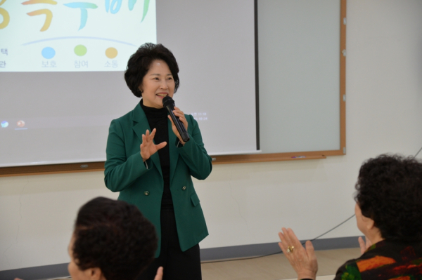 한편, 이날 행사에서는 어르신들의 정서적 풍요와 즐거움을 더하기 위한 특별한 순서도 마련되었다. 도정자 회장은 트로트 가수를 능가하는 노래 실력으로 레크레이션을 진행하여 어르신들을 마냥 즐겁게 했다.