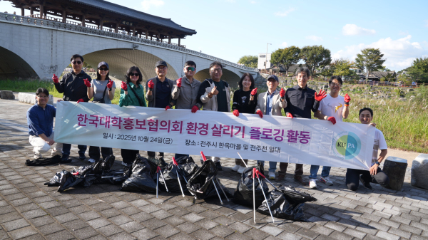 [충청뉴스 유규상 기자] 한국대학홍보협의회(회장 황의택 한국기술교육대학교 홍보팀장)는 지난 24일 전주 한옥마을과 전주천 일대에서 환경 살리기 플로깅(Plogging) 행사를 진행했다.