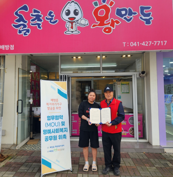이번 협약으로 춤추는왕만두는 지역 내 도움이 필요한 이웃을 발굴하고, 배방읍 찾아가는 보건복지팀과 협력해 복지 사각지대 해소에 동참하기로 했다.