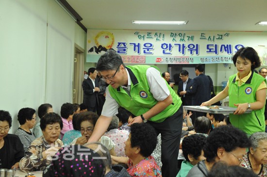 충청지방우정청(청장 김영수)은 우리 민족의 최대 명절인 추석을 맞아 13일 대전시 서구 삼천동에 있는 둔산종합사회복지관에서 ‘어르신 무료급식 행사’를 가졌다.