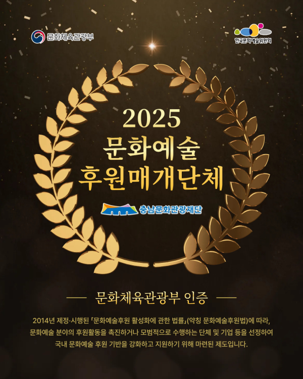 충남문화관광재단, '2025 문화예술후원매개단체' 신규인증 선정