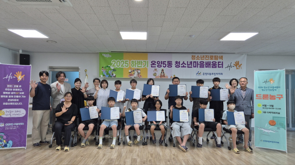 김달중 온양 5동 주민자치회장은 “마을 자원을 활용한 4개월의 교육이 청소년들이 꿈과 진로를 탐색하고 건강하게 성장하는 계기가 되었길 바란다”며 “프로그램 운영에 힘써주신 강사와 자원봉사자분들께 감사드린다”고 전했다.