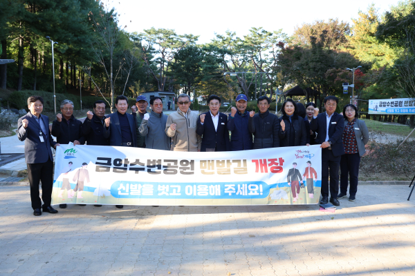 [충청뉴스 계룡 = 조홍기 기자] 계룡시(시장 이응우)는 28일 금암수변공원 맨발길을 개장하고 이응우 시장을 비롯한 공무원과 시민이 참석한 가운데 체험행사를 가졌다.