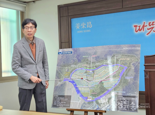 한규현 홍성군 공공시설관리사업소장은 4일 군청 행정홍보지원실에서 브리핑을 열어 자연장지 조성사업에 대해 설명했다.