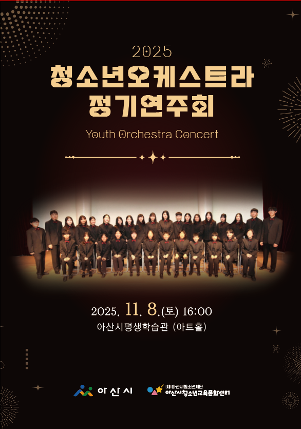 [충청뉴스 유규상 기자] 아산시청소년재단(대표이사 김영호) 산하 아산시청소년교육문화센터는 오는 8일  「2025년 청소년오케스트라 정기연주회」를 아산시 평생학습관 아트홀에서 개최한다.