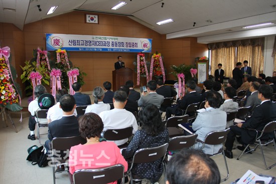 조연환 이사장은 격려사에서 “산림아카데미 원우들이 졸업 후에도 한가족이 되어 기별로, 또 지역별로 활발하게 활동하며 총동창회가 조직되기를 바라던 시점에서 발족돼 더욱 기쁘다”며 “한회장은 1기 회장으로서 지금까지 산림아카데미 원우회를 탁월하게 이끌어 오신만큼 원우들을 하나로 묶어 큰 일을 이루어 주길 바란다”고 기원했다.