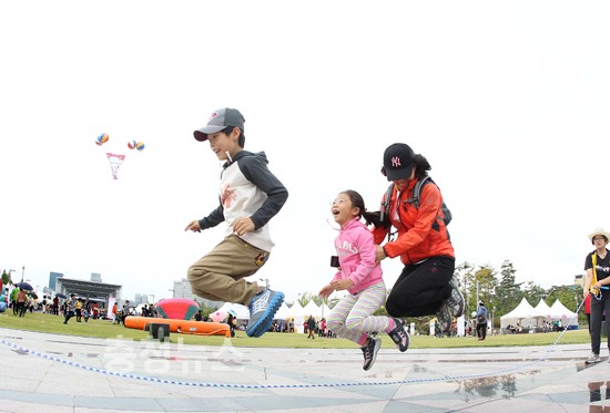 둘짼 날에는 엑스포 시민광장에서 출발 갑천변을 따라 가족과 함께 걷는 10리길 걷기대회가 펼쳐져 1만여 명의 가족, 연인이 함께 걸으며 축제의 절정을 이루었다