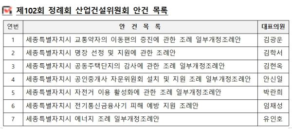 김재형 위원장은 "올 한 해, 우리 위원회는 시민의 삶의 질 향상과 세종시의 지속 가능한 발전을 목표로 의정활동을 펼쳐왔다"며, 그 중심을 '현장'에 두었음을 강조했다.