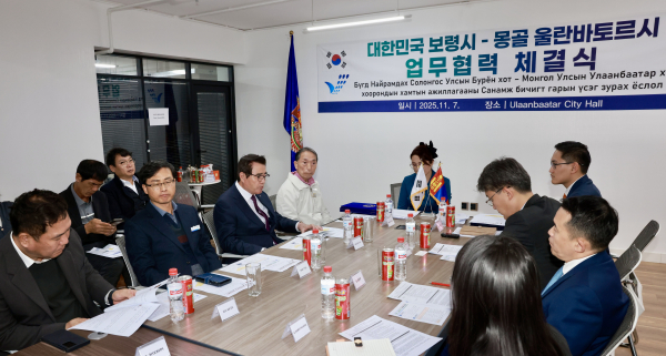 [충청뉴스 보령 = 조홍기 기자] 보령시는 7일 몽골 울란바토르시와 상호 발전적인 협력관계 증진을 위한 ‘보령시–울란바토르시 우호협력 양해각서(MOU)’를 체결했다.
