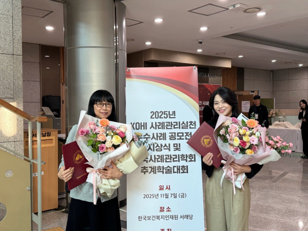 이준영·전진희 통합사례관리사는 “이번 수상은 저희가 현장에서 주민들과 함께 고민하며 찾아낸 작은 변화들이 인정받은 결과라 더욱 의미가 크다”며, “앞으로도 시민에게 실질적인 도움이 되는 사례관리를 이어 나가겠다”고 말했다.