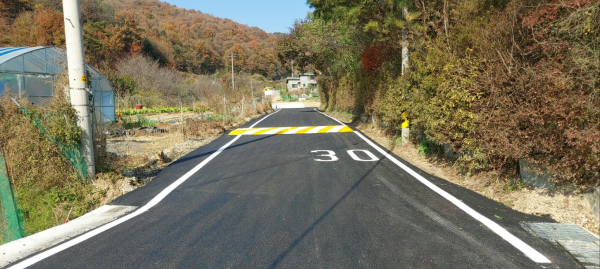 사업완료 구간은 총사업비 11억원을 투입해 지난 4월부터 8개월간 도로 확장 공사를 추진해 총연장 600m 공사가 마무리 되어 주민들의 교통 불편이 해소되고, 도로 이용 편의성이 크게 향상될 것으로 기대하고 있다.