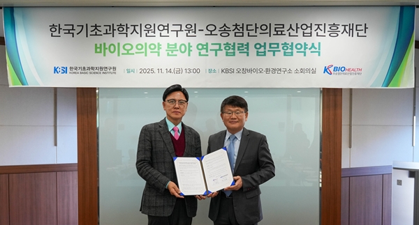 [충청뉴스 이성현 기자] 한국기초과학지원연구원(KBSI)은 오송첨단바이오의료산업진흥재단(KBIOHealth)과 ‘바이오의약 분야 연구협력 및 인력양성’을 위한 업무 협약을 체결했다고 17일 밝혔다.