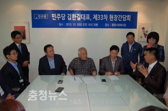▲ 김한길 대표가 사회복지사들과 현장의 소리를 청취하고 있다