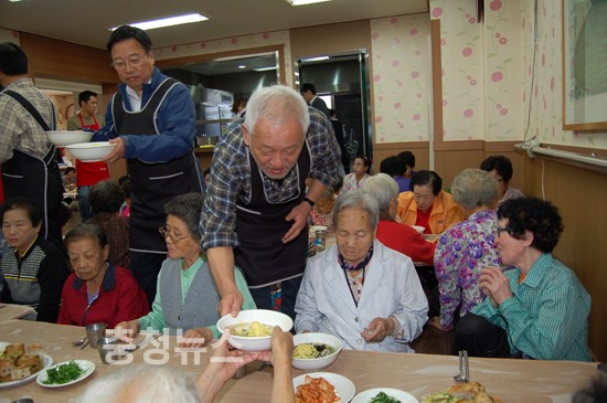 ▲ 김 대표가 중촌사회복지관에서 배식 봉사를 하고 있다.