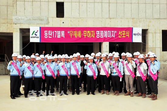 수도권 첫 예미지인 동탄2신도시 17블록 예미지 신축공사 현장에서 무재해·무하자 예미지 건설을 위한 품질실천 서명식이 열렸다.