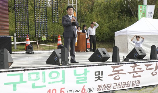 ▲ 구민의 날 및 동춘당문화제에서 정용기 구청장이 인사말을 하고 있다.