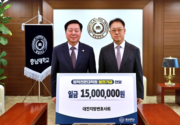 [충청뉴스 이성현 기자] 충남대학교는 대전지방변호사회가 전문 법조인력 양성을 위해 써 달라며 발전기금을 기부했다고 18일 밝혔다.