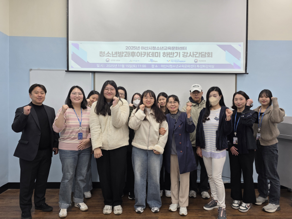 [충청뉴스 유규상 기자] (재)아산시청소년재단 산하 아산시청소년교육문화센터(관장 배정수) 청소년방과후아카데미 ‘꿈달아’는 지난 15일, 아산시청소년교육문화센터에서 2025년 하반기 강사간담회를 진행했다.
