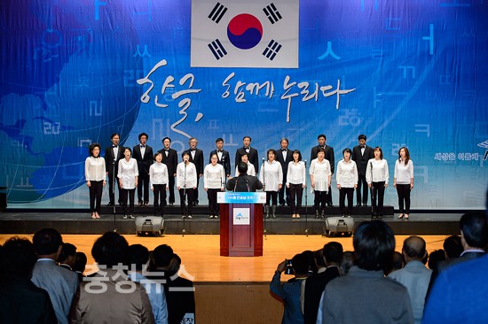 ▲ 세종시가 9일 오전 10시 세종문화예술회관 대강당에서 567돌 한글날 경축식을 연다. 사진은 지난해 10월 9일 세종시문화예술회관에서 열린 한글날 경축식 자료사진.