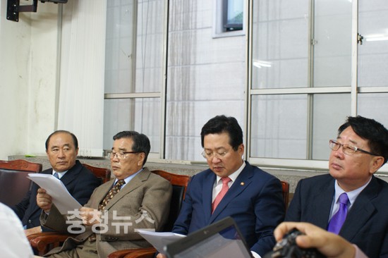 ▲ 오장섭 前건교부장관, 조준호 前대전일보사장, 이장우 시당위원장, 이상태 前대전시의회 의장