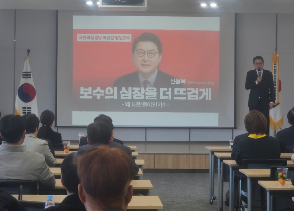 국민의힘 지휘부, 아산시 당원교육에서 단합과 역사적 소명의식 강조