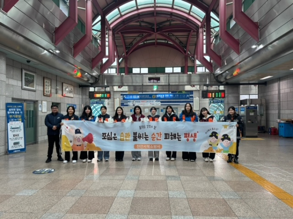 [충청뉴스 유규상 기자] 서북소방서(서장 김종욱) 남서울대학교 119청소년단 학생들은 25일 성환역과 26일 남서울대학교 일대에서 ‘불조심 강조의 달’ 캠페인 홍보 활동을 펼쳤다.