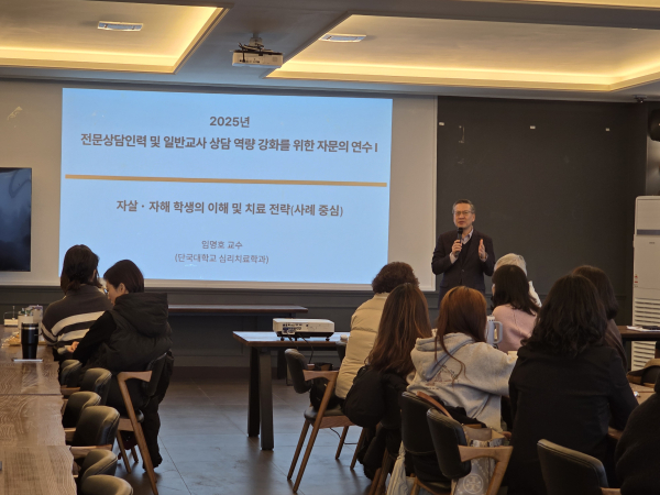 임명호 교수(단국대학교 심리치료학과)는 오전 강의에서 위기 청소년의 심리사회적 요인(충동성, 열등감, 불안·우울 등)을 분석하며, 이러한 요인이 자살 행동에 미치는 영향을 설명했다. 특히 이성적 판단보다 감정의 안정이 합리적 결정을 이끌어낸다고 역설하며, 청소년의 감정을 안정화할 수 있는 실제적 방법을 안내했다.